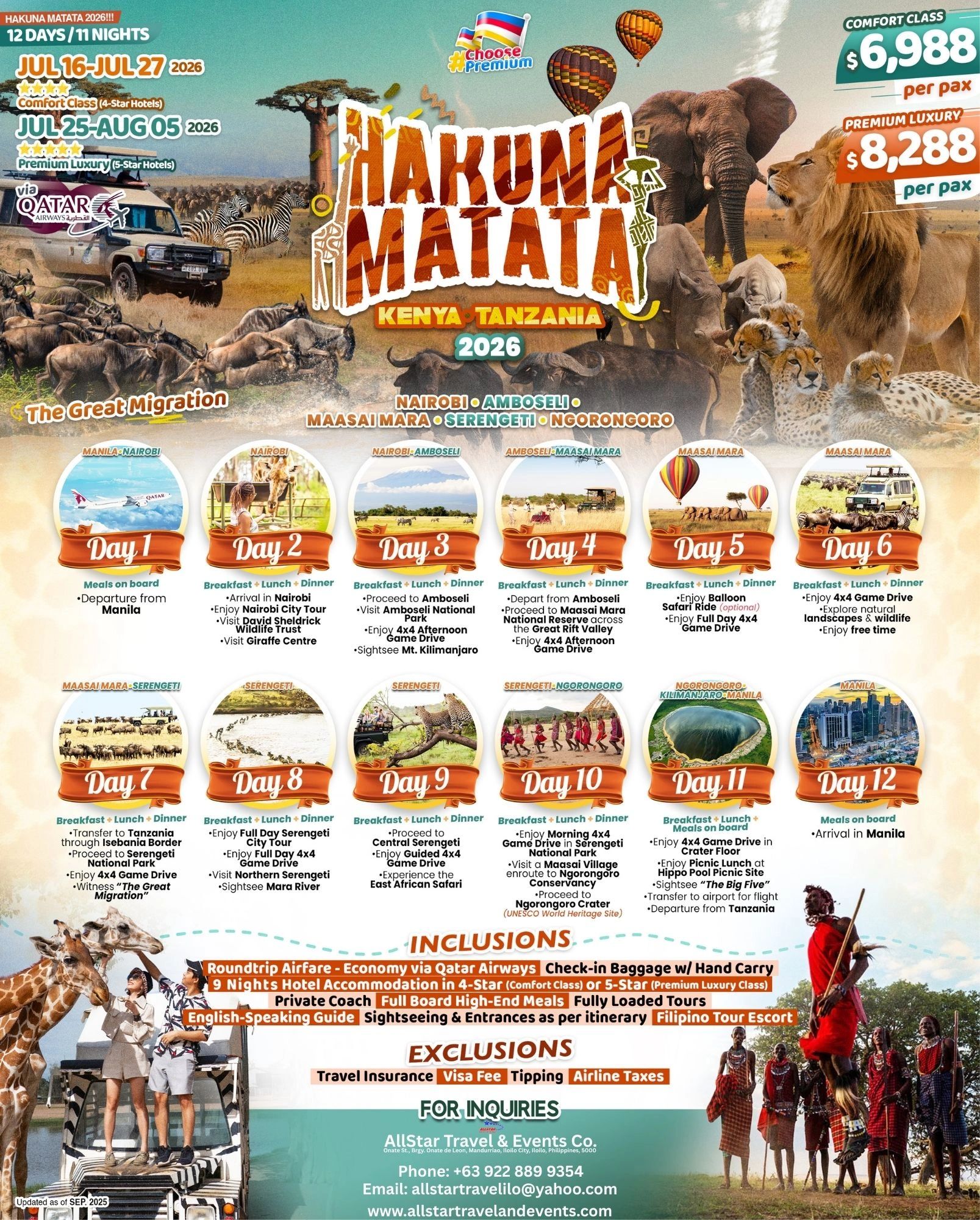 Nairobi | Amboseli | Maasai Mara | Serengeti | Ngorongoro